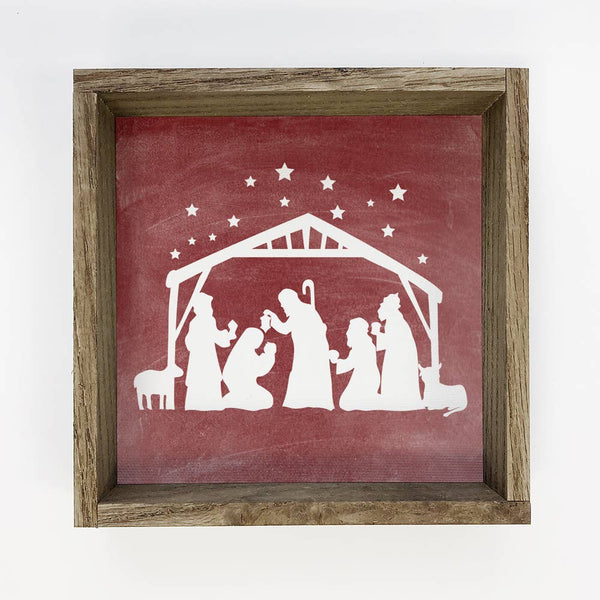 Nativity Red Canvas Wall Art Small Christmas Small Decor: 6x6" Mini Canvas Art with Wood Box Frame